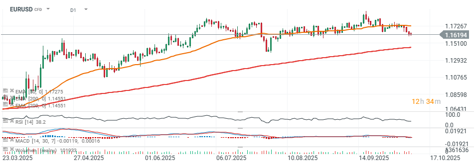 Na rynku walutowym kurs EUR/USD ponownie spadł w okolice 1,16, jednak patrząc na wykres, można zauważyć, że od kwietnia 2025 roku doszło już do dwóch podobnych korekt, w trendzie wzrostowym.