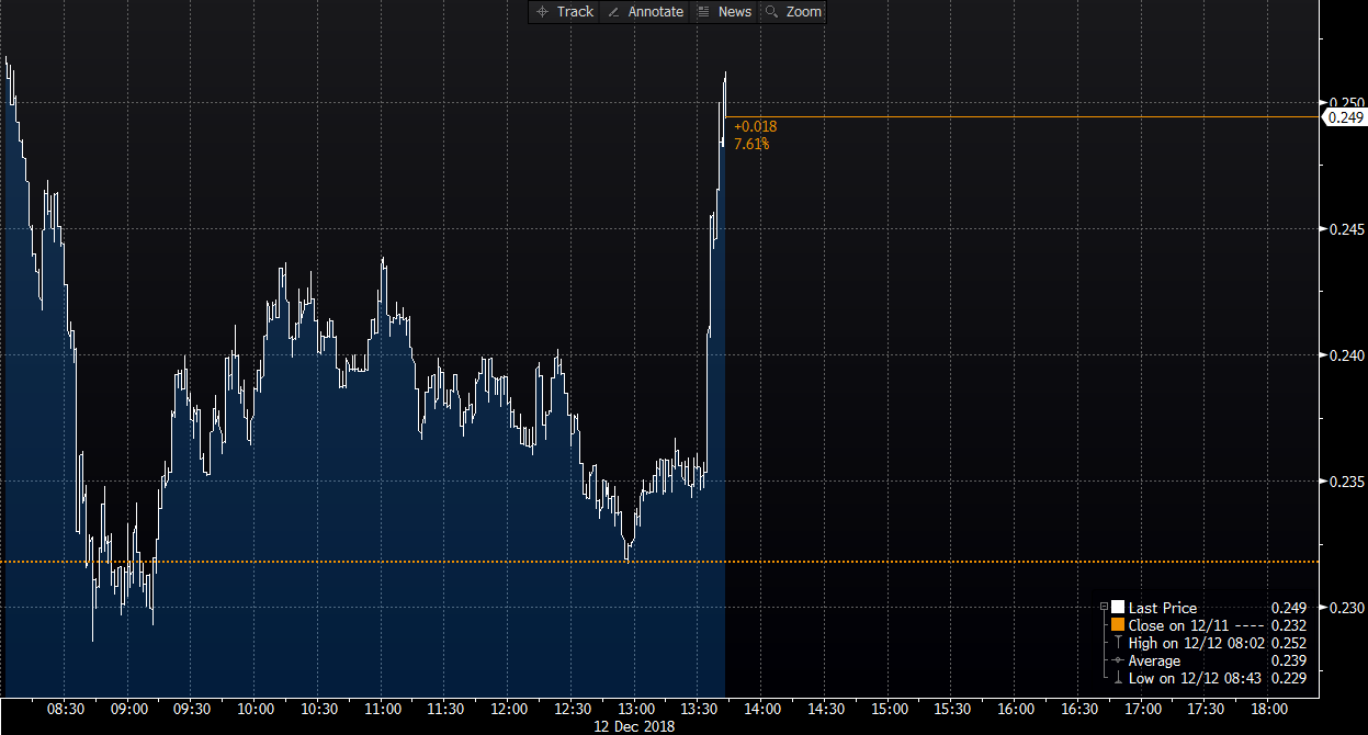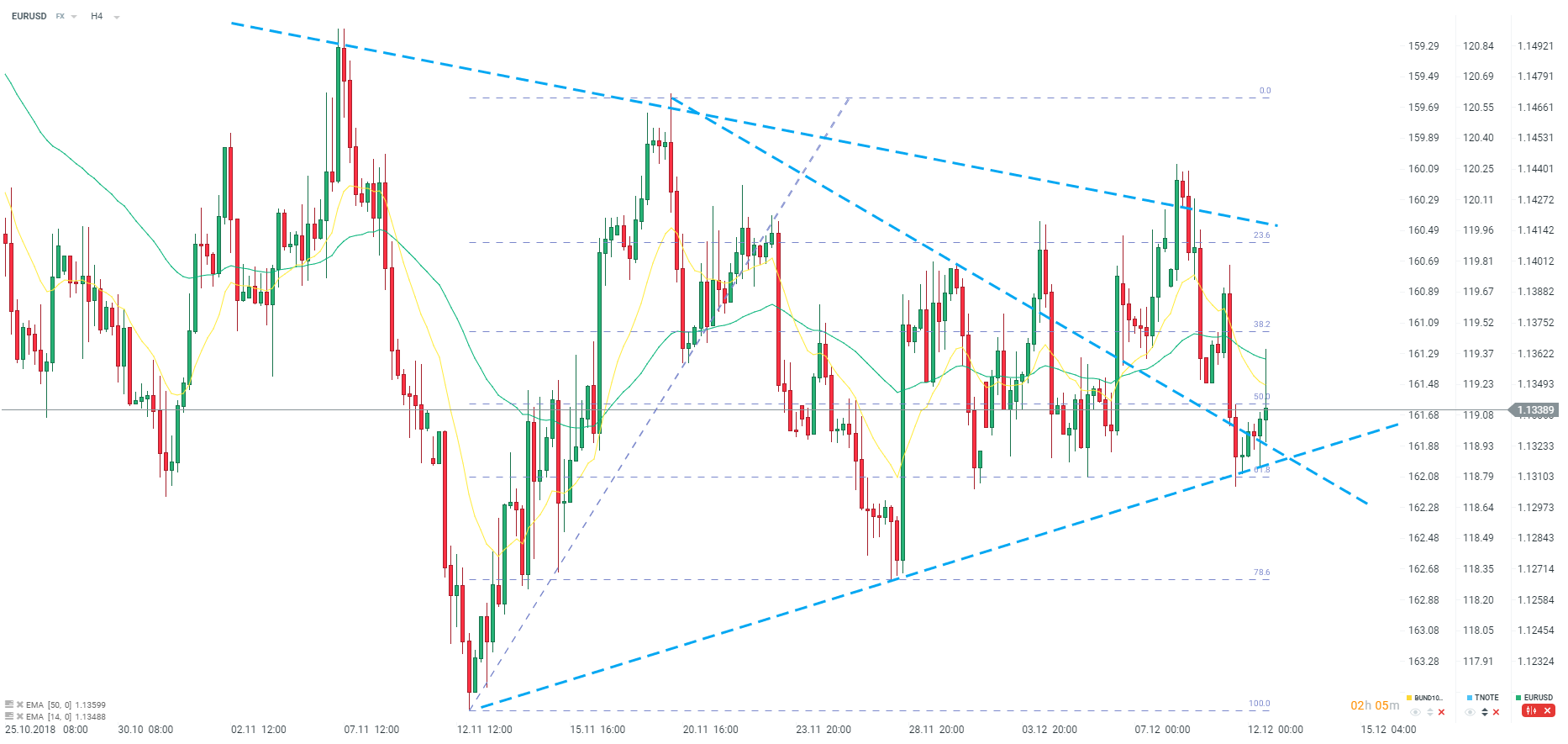 Najnowsze informacje mówią o tym, że Włochy mają przedstawić Komisji Europejskiej budżet zakładający 2,0% deficyt. Oznacza to, że Conte prawdopodobnie przekonał Salviniego i Di Maio do zmniejszenia wydatków, co zwiększa szansę akceptacji budżetu przez europejskie instytucje. Przypomnijmy, że populistyczny rząd Włoch początkowo przedstawił budżet zakładający 2,4%, natomiast rekomendacja KE wynosiła 1,6% ze względu na ogromne zadłużenie państwa. Rynki dosyć istotnie reagują na te wieści. Obserwujemy spory spadek rentowności we Włoszech oraz odbicie na europejskiej walucie.