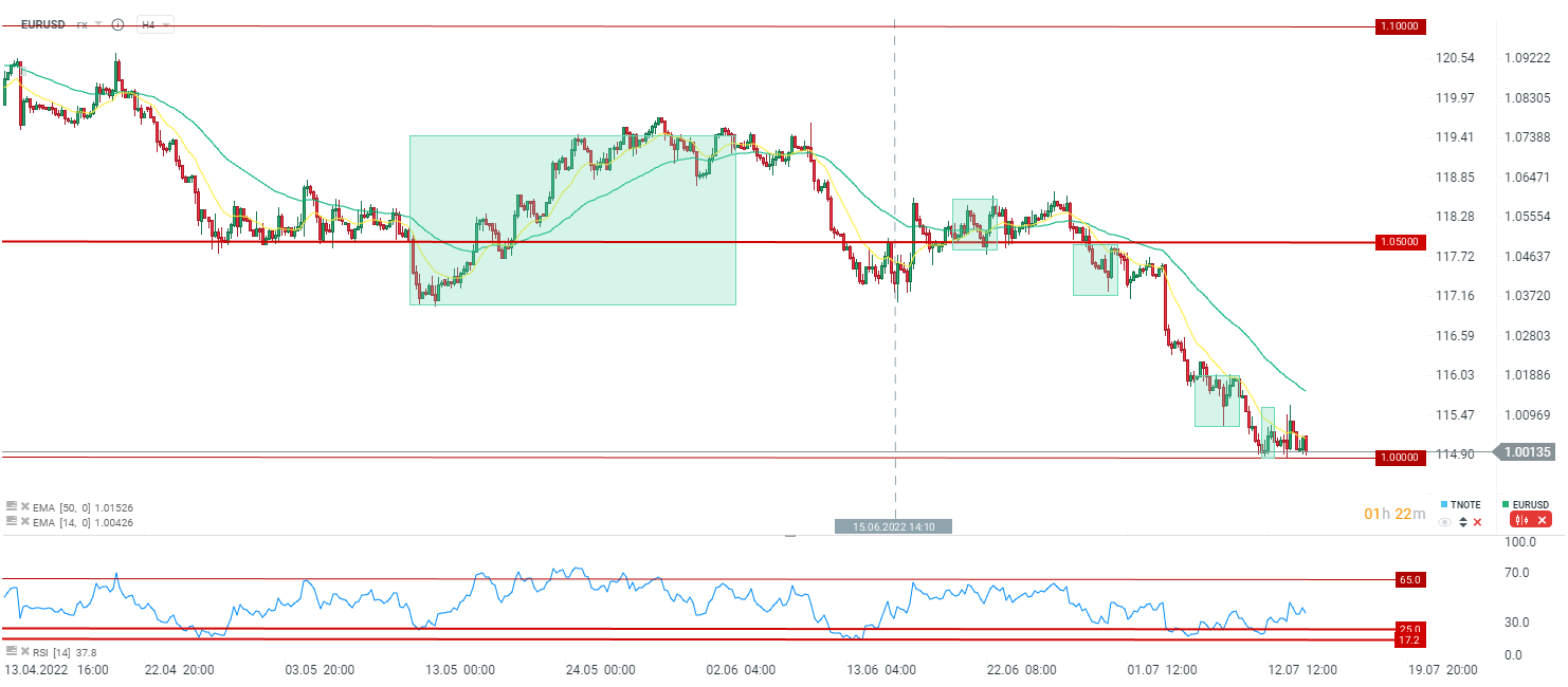 EURUSD cały czas broni 1,0000. Pytanie jak głęboko schowane są stop lossy, które mogłyby doprowadzić do większego ruchu na południe? Źródło: xStation5