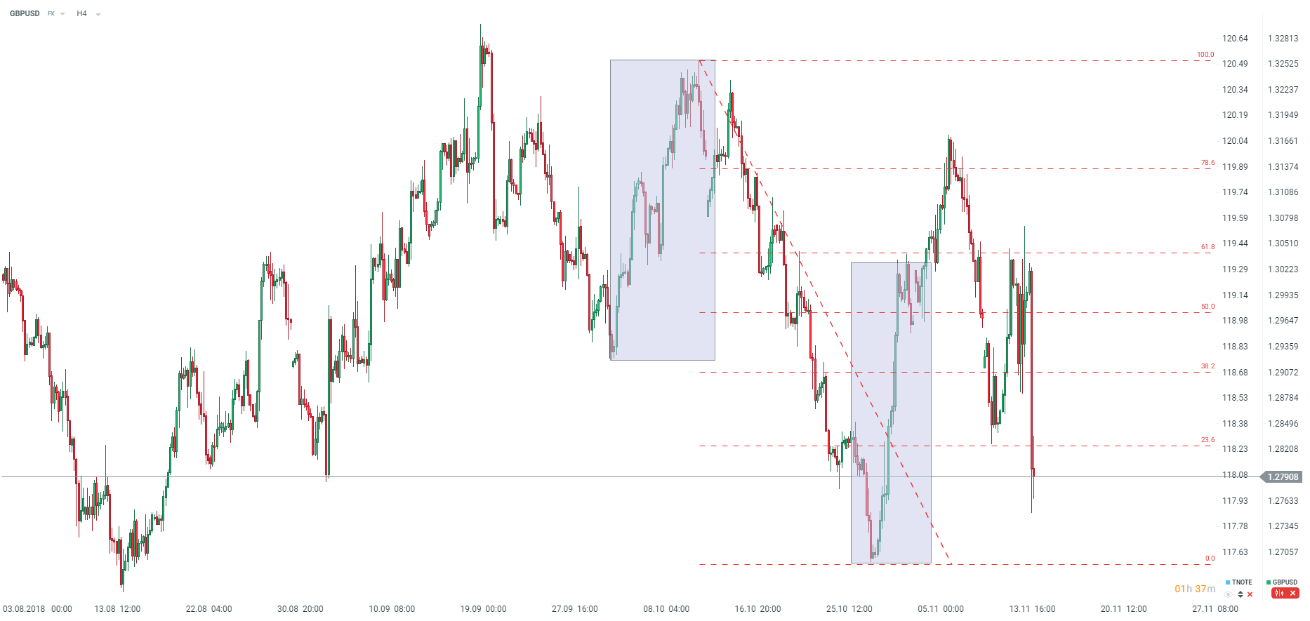 Niepewność na funcie jest wciąż obecna. Najpierw mieliśmy do czynienia z ogromną deprecjacją, która wywołana była poprzez rezygnację ministra ds. Brexitu Raaba. Przez ostatnie godziny mamy do czynienia z napływaniem tak dużej ilości informacji, że w tym momencie ciężko ocenić, które są aktualne, które są prawdziwe, które zdementowane i jakie jest oficjalne stanowisko każdej z osób. Widać jednak jak to wszystko postrzega rynek - bardzo negatywnie. Poniżej najważniejsze informacje, które naszym zdaniem są obecnie najważniejsze: