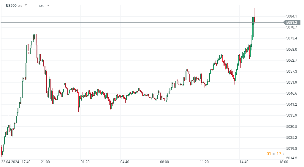 Notowania kontraktu na indeks S&P500 (US500) w interwale 5-minutowym. Źródło: xStation