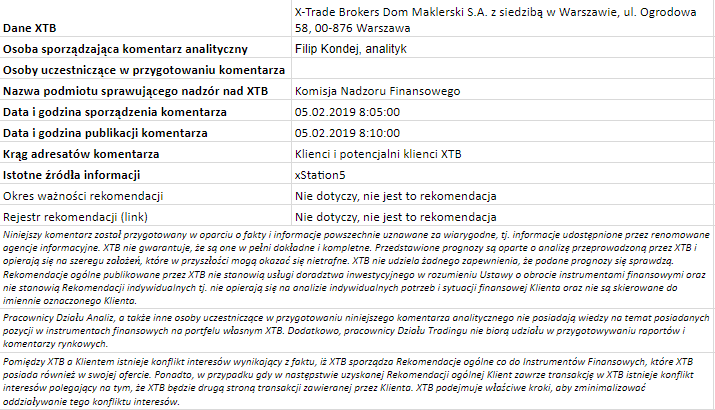 Ta publikacja handlowa jest informacyjna i edukacyjna. Nie jest rekomendacją inwestycyjną ani informacją rekomendującą lub sugerującą strategię inwestycyjną. W materiale nie sugerujemy żadnej strategii inwestycyjnej ani nie świadczymy usługi doradztwa inwestycyjnego. Materiał nie uwzględnia indywidualnej sytuacji finansowej, potrzeb i celów inwestycyjnych klienta. Nie jest też ofertą sprzedaży ani subskrypcji. Nie jest zaproszeniem do nabycia, reklamą ani promocją jakichkolwiek instrumentów finansowych. Publikację handlową przygotowaliśmy starannie i obiektywnie. Przedstawiamy stan faktyczny znany autorom w chwili tworzenia dokumentu. Nie umieszczamy w nim żadnych elementów oceniających. Informacje i badania oparte na historycznych danych lub wynikach oraz prognozy nie stanowią pewnego wskaźnika na przyszłość. Nie odpowiadamy za Twoje działania lub zaniechania, zwłaszcza za to, że zdecydujesz się nabyć lub zbyć instrumenty finansowe na podstawie informacji z tej publikacji handlowej. Nie odpowiadamy też za szkody, które mogą wynikać z bezpośredniego czy też pośredniego wykorzystania tych informacji. Inwestowanie jest ryzykowne. Inwestuj odpowiedzialnie.