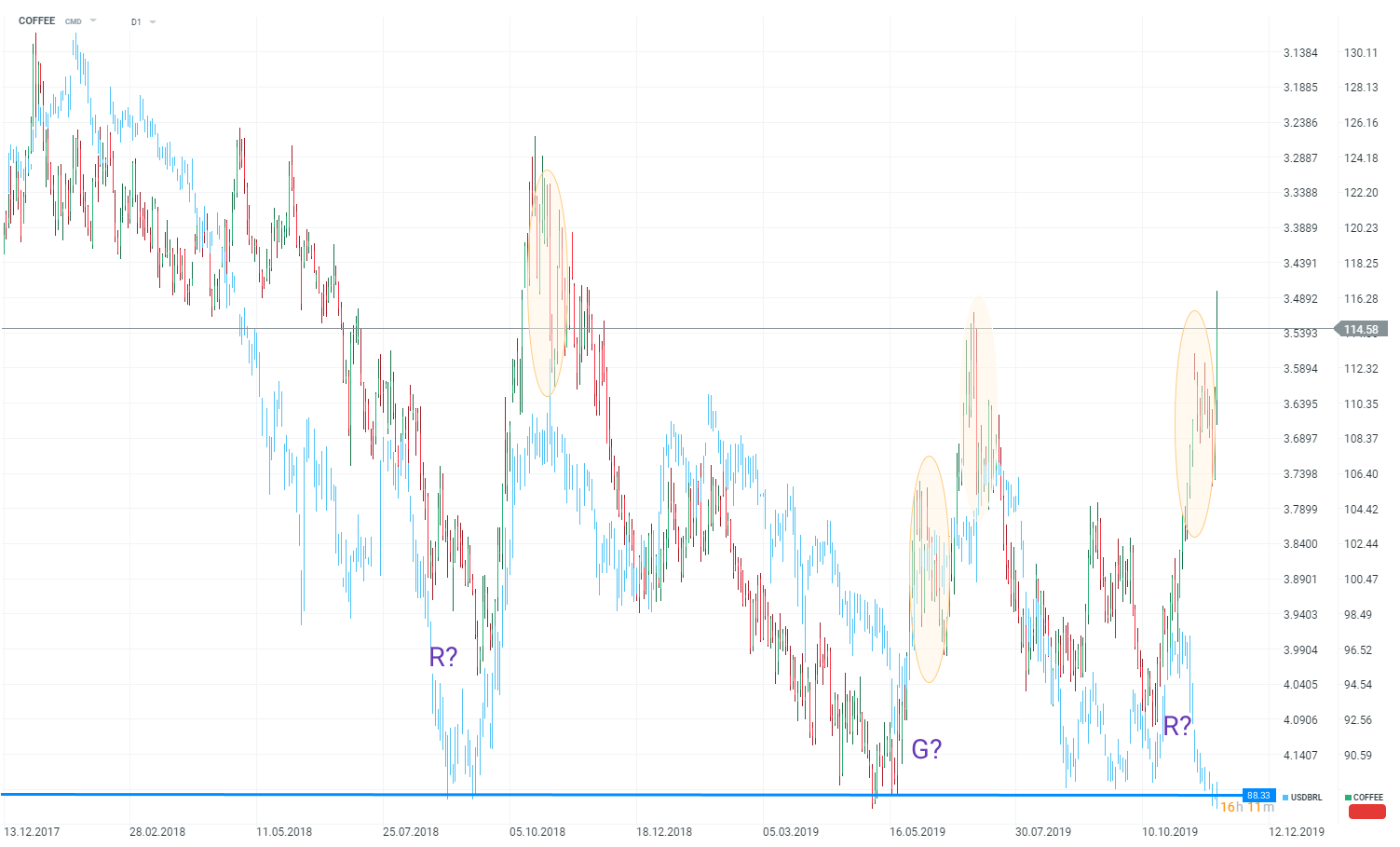 Kawa należała do „przegranych” surowców ostatnich miesięcy, a nawet kwartałów. Wysokie zbiory powodowały nadwyżkę, zaś bardzo słaby real brazylijski utrudniał dostosowanie ceny dolarowej. W pewnym momencie mogło się wydawać, że ceny kawy już nigdy nie wzrosną. Poprzednie dwa odbicia przynajmniej w części motywowane były zwyżkującym realem i okazały się one pułapką. Tym razem real jest rekordowo słaby, a ceny i tak rosną. Co więcej, po okresie zawahania na szczycie – które w przeszłości sygnalizowało koniec wzrostów – cena tylko na chwilę się cofnęła, po czym wystrzeliła mocniej w górę. Gdyby jeszcze brazylijska waluta zaczęła odrabiać straty, obecne odbicie na kawie wreszcie mogłoby okazać się trwałe.