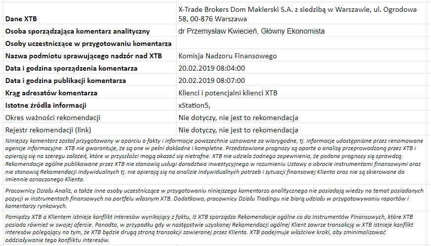 Ta publikacja handlowa jest informacyjna i edukacyjna. Nie jest rekomendacją inwestycyjną ani informacją rekomendującą lub sugerującą strategię inwestycyjną. W materiale nie sugerujemy żadnej strategii inwestycyjnej ani nie świadczymy usługi doradztwa inwestycyjnego. Materiał nie uwzględnia indywidualnej sytuacji finansowej, potrzeb i celów inwestycyjnych klienta. Nie jest też ofertą sprzedaży ani subskrypcji. Nie jest zaproszeniem do nabycia, reklamą ani promocją jakichkolwiek instrumentów finansowych. Publikację handlową przygotowaliśmy starannie i obiektywnie. Przedstawiamy stan faktyczny znany autorom w chwili tworzenia dokumentu. Nie umieszczamy w nim żadnych elementów oceniających. Informacje i badania oparte na historycznych danych lub wynikach oraz prognozy nie stanowią pewnego wskaźnika na przyszłość. Nie odpowiadamy za Twoje działania lub zaniechania, zwłaszcza za to, że zdecydujesz się nabyć lub zbyć instrumenty finansowe na podstawie informacji z tej publikacji handlowej. Nie odpowiadamy też za szkody, które mogą wynikać z bezpośredniego czy też pośredniego wykorzystania tych informacji. Inwestowanie jest ryzykowne. Inwestuj odpowiedzialnie.
