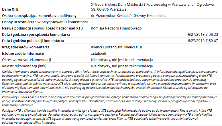 Ta publikacja handlowa jest informacyjna i edukacyjna. Nie jest rekomendacją inwestycyjną ani informacją rekomendującą lub sugerującą strategię inwestycyjną. W materiale nie sugerujemy żadnej strategii inwestycyjnej ani nie świadczymy usługi doradztwa inwestycyjnego. Materiał nie uwzględnia indywidualnej sytuacji finansowej, potrzeb i celów inwestycyjnych klienta. Nie jest też ofertą sprzedaży ani subskrypcji. Nie jest zaproszeniem do nabycia, reklamą ani promocją jakichkolwiek instrumentów finansowych. Publikację handlową przygotowaliśmy starannie i obiektywnie. Przedstawiamy stan faktyczny znany autorom w chwili tworzenia dokumentu. Nie umieszczamy w nim żadnych elementów oceniających. Informacje i badania oparte na historycznych danych lub wynikach oraz prognozy nie stanowią pewnego wskaźnika na przyszłość. Nie odpowiadamy za Twoje działania lub zaniechania, zwłaszcza za to, że zdecydujesz się nabyć lub zbyć instrumenty finansowe na podstawie informacji z tej publikacji handlowej. Nie odpowiadamy też za szkody, które mogą wynikać z bezpośredniego czy też pośredniego wykorzystania tych informacji. Inwestowanie jest ryzykowne. Inwestuj odpowiedzialnie.