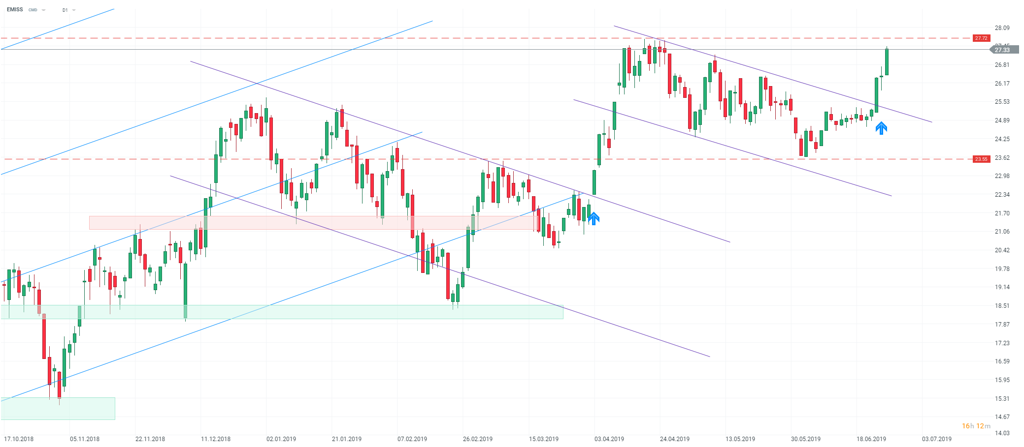Trend wzrostowy na instrumencie EMISS nadal jest utrzymany. Źródło: xStation5