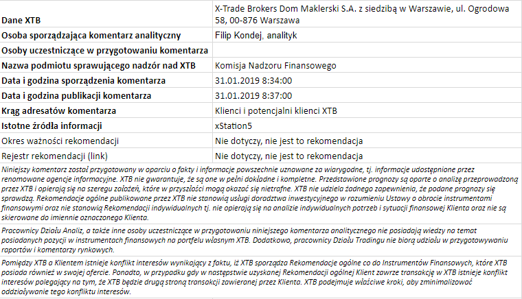 Ta publikacja handlowa jest informacyjna i edukacyjna. Nie jest rekomendacją inwestycyjną ani informacją rekomendującą lub sugerującą strategię inwestycyjną. W materiale nie sugerujemy żadnej strategii inwestycyjnej ani nie świadczymy usługi doradztwa inwestycyjnego. Materiał nie uwzględnia indywidualnej sytuacji finansowej, potrzeb i celów inwestycyjnych klienta. Nie jest też ofertą sprzedaży ani subskrypcji. Nie jest zaproszeniem do nabycia, reklamą ani promocją jakichkolwiek instrumentów finansowych. Publikację handlową przygotowaliśmy starannie i obiektywnie. Przedstawiamy stan faktyczny znany autorom w chwili tworzenia dokumentu. Nie umieszczamy w nim żadnych elementów oceniających. Informacje i badania oparte na historycznych danych lub wynikach oraz prognozy nie stanowią pewnego wskaźnika na przyszłość. Nie odpowiadamy za Twoje działania lub zaniechania, zwłaszcza za to, że zdecydujesz się nabyć lub zbyć instrumenty finansowe na podstawie informacji z tej publikacji handlowej. Nie odpowiadamy też za szkody, które mogą wynikać z bezpośredniego czy też pośredniego wykorzystania tych informacji. Inwestowanie jest ryzykowne. Inwestuj odpowiedzialnie.