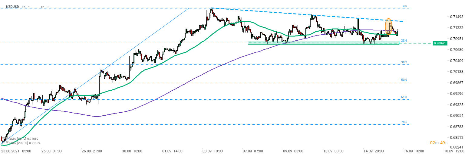 Dużym pozytywnym zaskoczeniem okazał się raport o PKB za II kwartał z Nowej Zelandii. Rynek oczekiwał, że gospodarka Nowej Zelandii wzrosła o 1,4% kwartał do kwartału w okresie kwiecień-czerwiec. Jednak rzeczywiste dane pokazały tempo wzrostu na poziomie 2,8% kw/kw. Dane są oczywiście mocno opóźnione w stosunku do obecnej rzeczywistości, ale to kolejny argument za podwyżką stóp RBNZ. Pojawiły się oczekiwania, że RBNZ podniesie stopy procentowe na posiedzeniu w sierpniu, ale nowe restrykcje w związku z ogniskami koronawirusa skłoniły bankierów centralnych do utrzymania stóp bez zmian. Kolejne spotkanie zaplanowano na 6 października 2021 r.