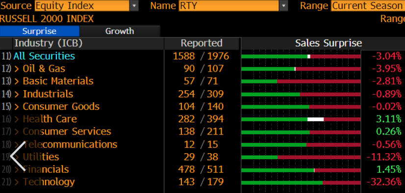 Wyniki dla Russela na poziomie sprzedaży rozczarowują. Źródło: Bloomberg