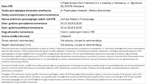 Ta publikacja handlowa jest informacyjna i edukacyjna. Nie jest rekomendacją inwestycyjną ani informacją rekomendującą lub sugerującą strategię inwestycyjną. W materiale nie sugerujemy żadnej strategii inwestycyjnej ani nie świadczymy usługi doradztwa inwestycyjnego. Materiał nie uwzględnia indywidualnej sytuacji finansowej, potrzeb i celów inwestycyjnych klienta. Nie jest też ofertą sprzedaży ani subskrypcji. Nie jest zaproszeniem do nabycia, reklamą ani promocją jakichkolwiek instrumentów finansowych. Publikację handlową przygotowaliśmy starannie i obiektywnie. Przedstawiamy stan faktyczny znany autorom w chwili tworzenia dokumentu. Nie umieszczamy w nim żadnych elementów oceniających. Informacje i badania oparte na historycznych danych lub wynikach oraz prognozy nie stanowią pewnego wskaźnika na przyszłość. Nie odpowiadamy za Twoje działania lub zaniechania, zwłaszcza za to, że zdecydujesz się nabyć lub zbyć instrumenty finansowe na podstawie informacji z tej publikacji handlowej. Nie odpowiadamy też za szkody, które mogą wynikać z bezpośredniego czy też pośredniego wykorzystania tych informacji. Inwestowanie jest ryzykowne. Inwestuj odpowiedzialnie.