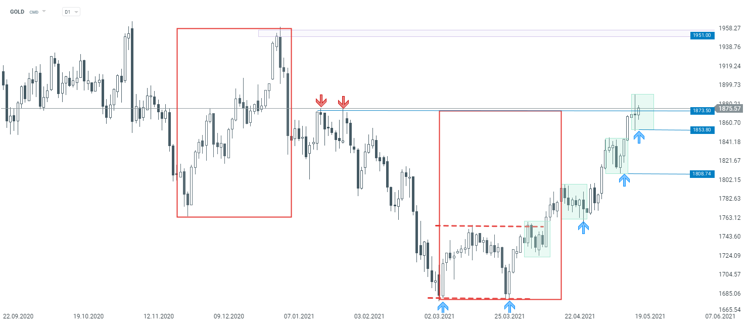 Złoto interwał D1. Źródło: xStation5