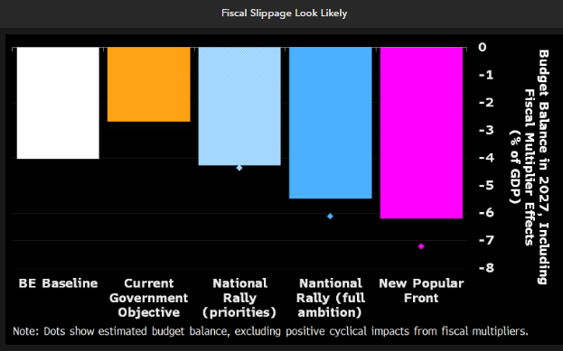 Lider Francji Nieujarzmionej, Jean Luc Melenchon, powiedział, że wdroży swój "cały program" i odmówił jakichkolwiek negocjacji z centrowym rządem prezydenta Macrona. Główne priorytety polityczne Melenchona obejmują wycofanie reform emerytalnych Macrona, zamrożenie cen niektórych podstawowych artykułów konsumpcyjnych i podniesienie płacy minimalnej. Są to polityki, które mogą wywołać dreszcze u inwestorów.