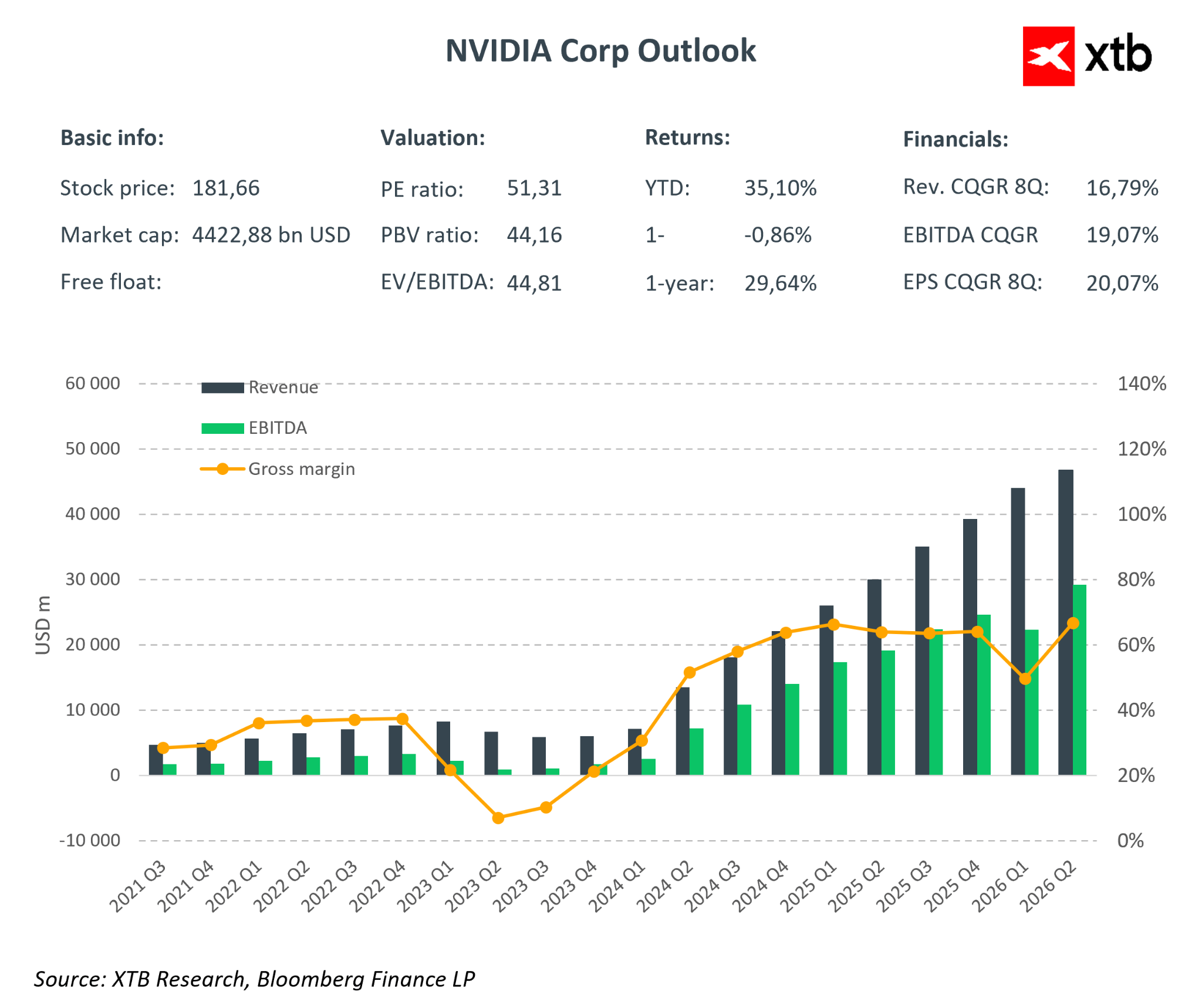 Łącząc te wskaźniki z wysokim tempem wzrostu przychodów oraz dominacją w kluczowych segmentach, można oczekiwać, że reakcja rynku na publikację raportu kwartalnego będzie intensywna. Nawet niewielkie różnice między rzeczywistymi wynikami a konsensusem analityków mogą wywołać dynamiczne zmiany cen akcji. Wysoka wycena oraz przewaga wobec benchmarków sprawiają, że Nvidia pozostaje jedną z najbardziej obserwowanych i premiowanych spółek w sektorze technologicznym. Skumulowane zwroty, zmiany wskaźników wycen i rekordowe prognozy tworzą klarowny obraz oczekiwań, które zostaną zweryfikowane już po dzisiejszej sesji giełdowej.