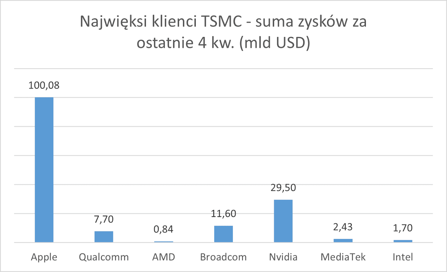 Przychody i zyski głównych klientów TSMC