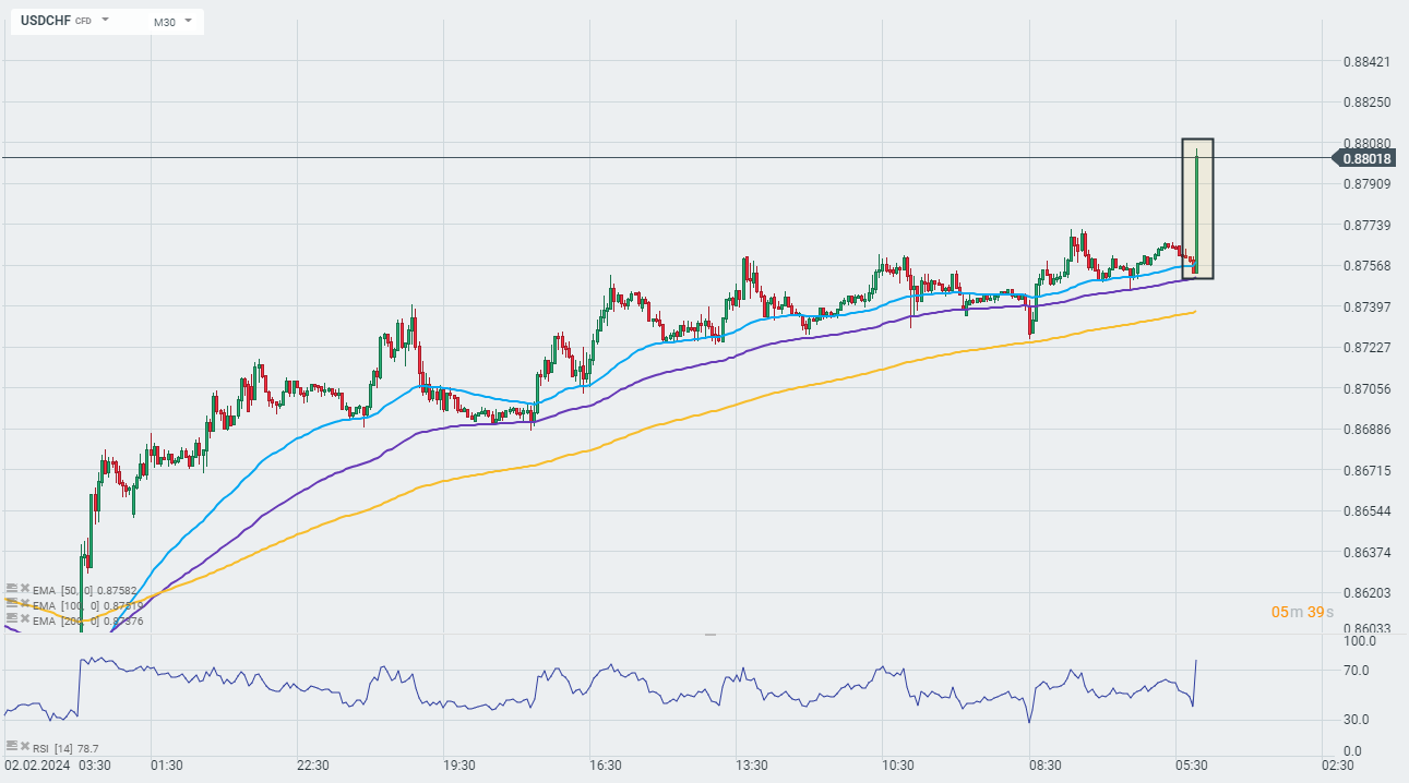 W ujęciu r/r jest to najniższy odczyt inflacji CPI w Szwajcarii od października 2021 roku. Frank szwajcarski wyraźnie traci po publikacji tych danych do innych walut na rynku FX.