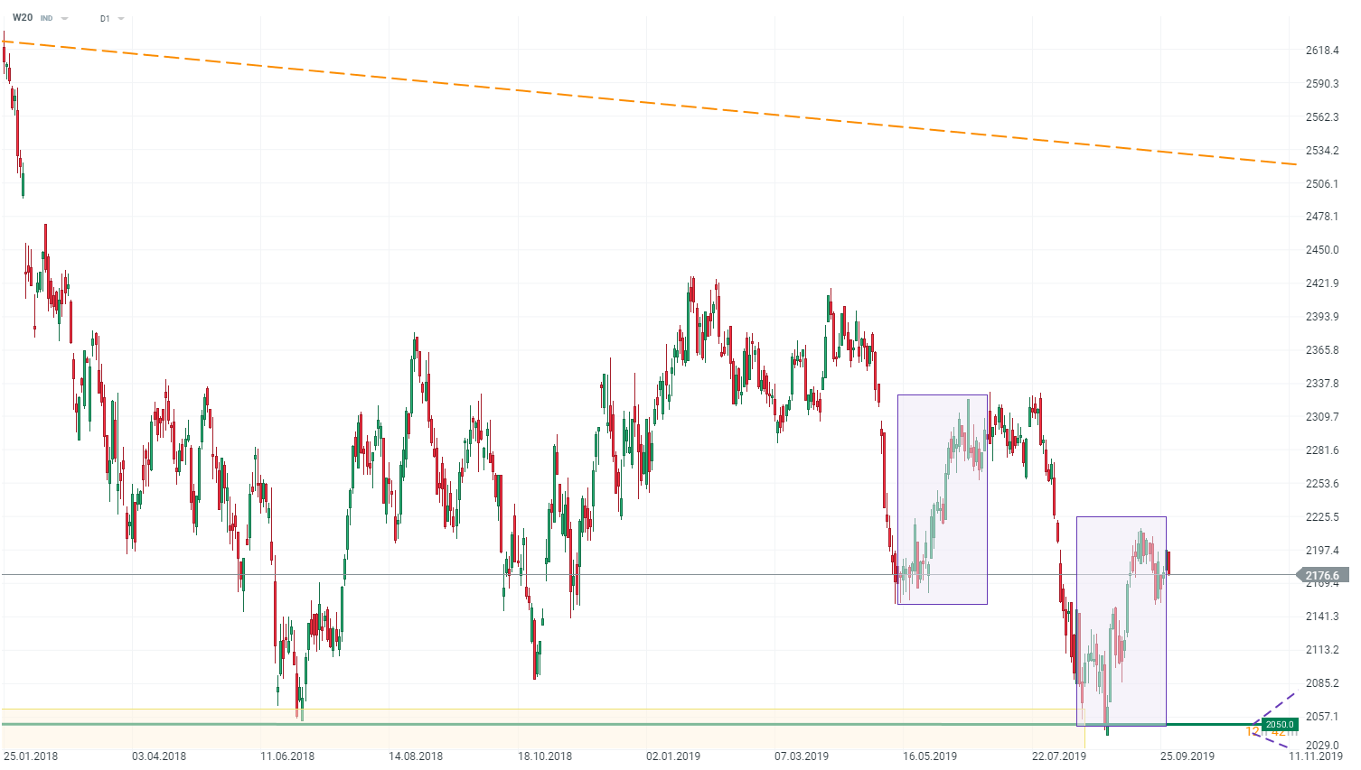 Ostatnie odbicie przypomina poprzedni ruch z czerwca. Nie jest to najlepszą wróżbą. Źródło: xStation5