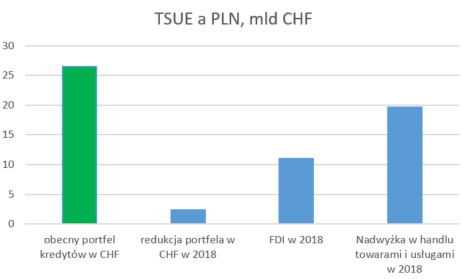Warto pamiętać, że sam wyrok TSUE (poznamy go w czwartek, o 9:30) nie dotyczy „frankowiczów”, czy też całego sektora bankowego, a jest odpowiedzią na pytania Sądu Okręgowego w Warszawie, który rozstrzyga w kwestii pojedynczego kredytu. Skąd zatem rynkowa panika? Wyrok TSUE zapewne będzie decydujący dla wyroku sądu w tej sprawie i jest duża szansa, że stanie się oficjalną linią orzecznictwa w tysiącach innych spraw. Chodzi przede wszystkim o kredyty indeksowane do franka szwajcarskiego, a przy korzystnej interpretacji, także o denominowane. 14 maja bieżącego roku poznaliśmy opinię rzecznika TSUE i jest ona korzystna dla kredytobiorców. Nie musi znaleźć przełożenia na wyrok, ale tak często bywało w przeszłości. Rynek jest zatem przekonany, że wyrok będzie niekorzystny dla banków, znacznie wzrośnie liczba składanych pozwów, które będą w większości rozstrzygane na korzyść klientów. O jakim zagrożeniu mówimy i przede wszystkim, jaka jest jego skala? Obecnie kredyty w CHF stanowią nieco ponad 26,5 mld franków – ta wielkość cały czas spada, ponieważ kredyty amortyzują się, a nowe nie są udzielane. To będzie nasz punkt wyjścia do oceny reakcji rynku.