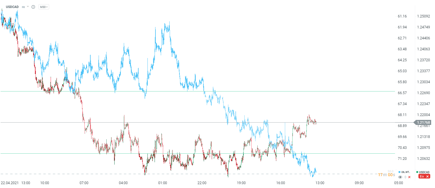 Ostatnia siła dolara amerykańskiego wywindowała parę USDCAD na wyższe poziomy, co również zbiegło się z pozostawieniem polityki bez zmian przez BoC. Ropa wskazuje jednak na potencjalnie mocniejszego CADa. Niemniej w najbliżśzym czasie wszystko może zależeć od tego, co dzisiaj zdecyduje Fed. Źródło: xStation5