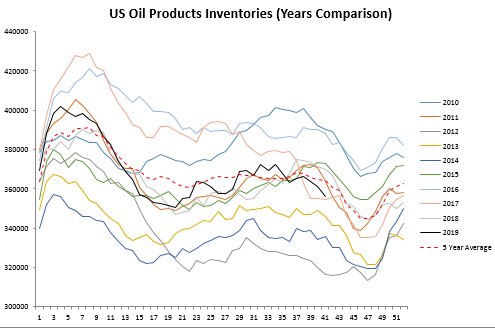 - Zapasy destylatów: -3,9 mln brk (oczekiwano: -2,0 mln brk; poprzednio: -2,4 mln brk)