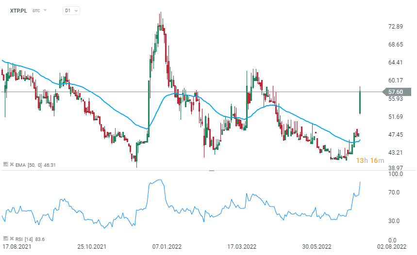 Notowania spółki rozpoczynają dzisiejszą sesję od pokaźnej luki wzrostowej! Źródło: xStation 5