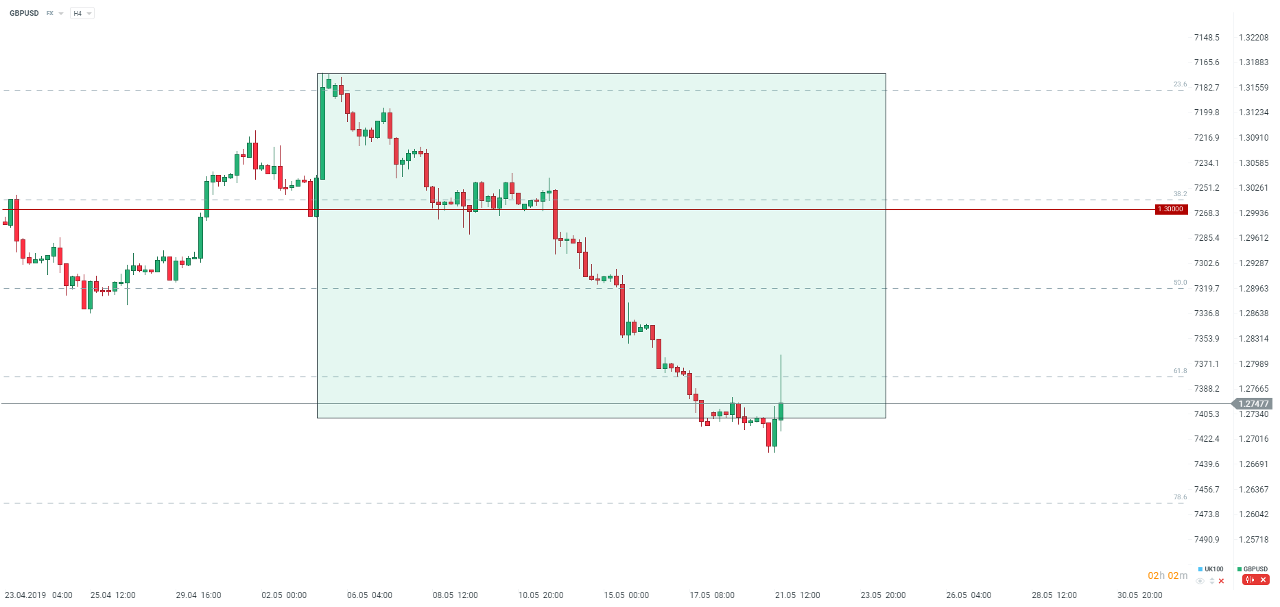 GBPUSD oddaje wcześniejsze wzrosty. Źródło: xStation5