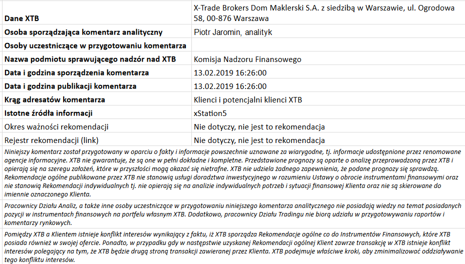Ta publikacja handlowa jest informacyjna i edukacyjna. Nie jest rekomendacją inwestycyjną ani informacją rekomendującą lub sugerującą strategię inwestycyjną. W materiale nie sugerujemy żadnej strategii inwestycyjnej ani nie świadczymy usługi doradztwa inwestycyjnego. Materiał nie uwzględnia indywidualnej sytuacji finansowej, potrzeb i celów inwestycyjnych klienta. Nie jest też ofertą sprzedaży ani subskrypcji. Nie jest zaproszeniem do nabycia, reklamą ani promocją jakichkolwiek instrumentów finansowych. Publikację handlową przygotowaliśmy starannie i obiektywnie. Przedstawiamy stan faktyczny znany autorom w chwili tworzenia dokumentu. Nie umieszczamy w nim żadnych elementów oceniających. Informacje i badania oparte na historycznych danych lub wynikach oraz prognozy nie stanowią pewnego wskaźnika na przyszłość. Nie odpowiadamy za Twoje działania lub zaniechania, zwłaszcza za to, że zdecydujesz się nabyć lub zbyć instrumenty finansowe na podstawie informacji z tej publikacji handlowej. Nie odpowiadamy też za szkody, które mogą wynikać z bezpośredniego czy też pośredniego wykorzystania tych informacji. Inwestowanie jest ryzykowne. Inwestuj odpowiedzialnie.