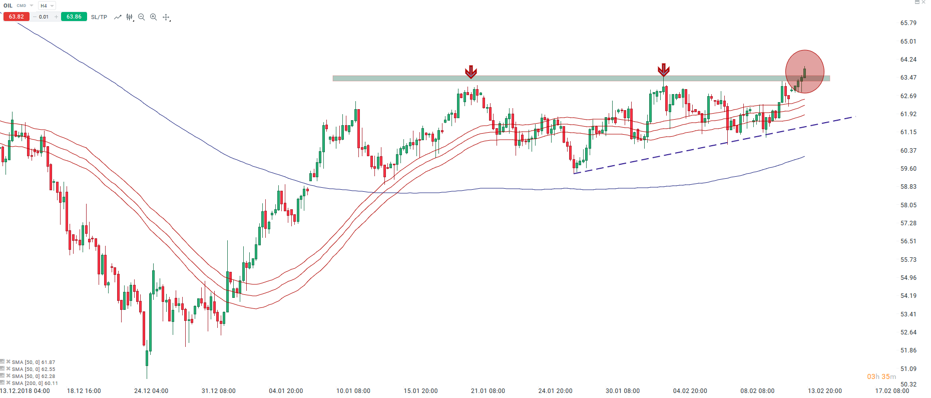 Ropa na ten moment wychodzi górą z ostatniego zakresu zmienności. Źródło: xStation5.