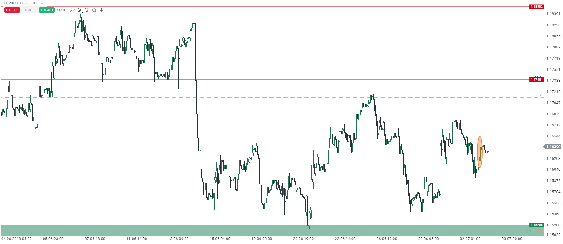 W tym tygodniu byliśmy już świadkami ogromnych niepewności dotyczacych niemieckiej polityki, ale prawdopodobnie kryzys został już zażegnany. Kanclerz Angela Merkel oraz Minister Spraw Wewnętrznych, Horst Seehofer osiągnęli porozumienie w sprawie migracji. Dodatkowo lider CSU wycofał swoje pogróżki dotyczące wycofania się ze swojego stanowsika. Oznacza to, że Merkel utrzymuje koalicję oraz niemiecki rząd, co praktycznie wyzerowuje szanse na przyśpieszone wybory tej jesieni. Wcześniej Merkel otrzymała 2 tygodniowy okres w którym miała osiągnąć porozumienie migracyjne z innymi państwami UE. Seehofer po spotkaniu z Merkel wskazał, że znaleźli wspólne podejście dotyczące zatrzymania nielegalnej imigracji przez niemieckie oraz austriacke granice. Euro wyraźnie zaczęło zyskiwać po tych rewelacjach, ale już dzisiaj mamy do czynienia z płaskim handlem. Kontrakty na niemieckiego DAXa otworzyły się dzisiaj pozytywnie, co daje nadzieje na potencjalne odbicie z okolic wielotygodniowych dołków.