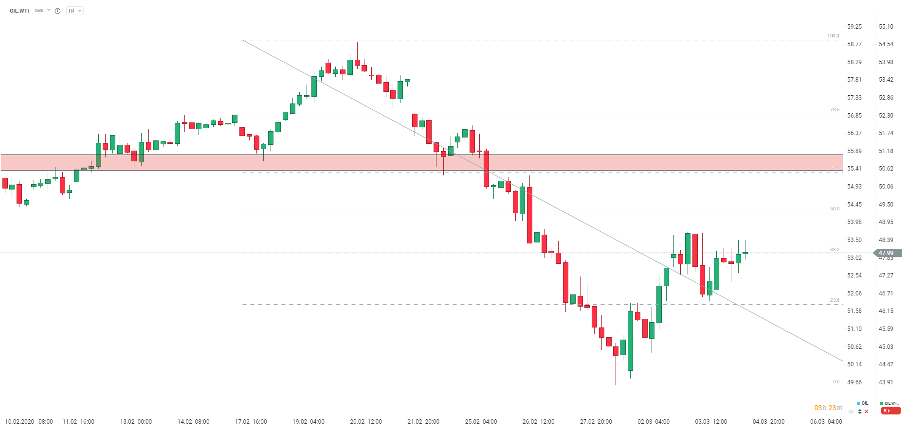 Ropa powraca poniżej 48 USD za baryłkę, pomimo pozytywnego dla rynku odczytu zapasów. Źródło: xStation5