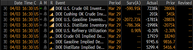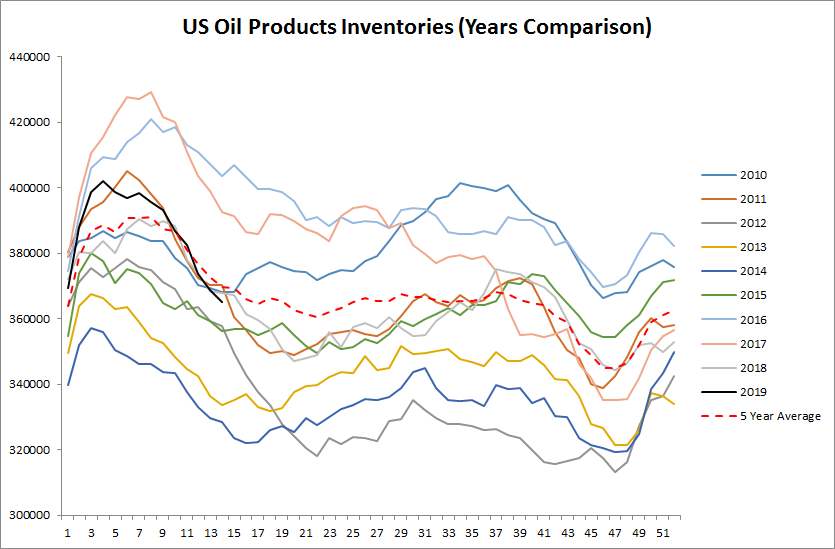 - Raport dotyczący zapasów jest negatywny dla ropy, gdyż zapasy produktów spadają głównie przez mniejszy od potrzeb przerób ropy naftowej
