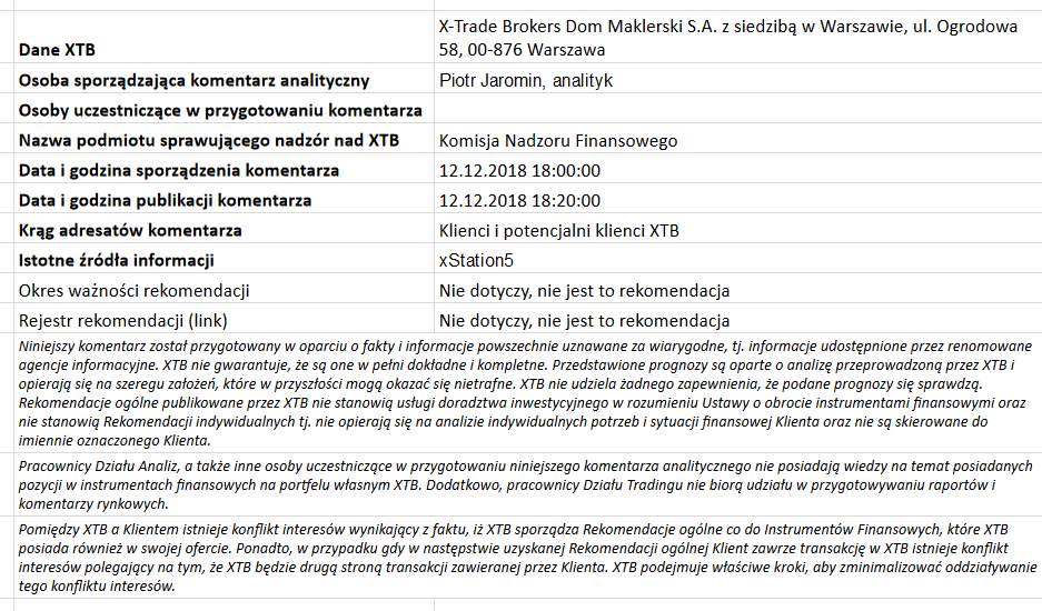 Ta publikacja handlowa jest informacyjna i edukacyjna. Nie jest rekomendacją inwestycyjną ani informacją rekomendującą lub sugerującą strategię inwestycyjną. W materiale nie sugerujemy żadnej strategii inwestycyjnej ani nie świadczymy usługi doradztwa inwestycyjnego. Materiał nie uwzględnia indywidualnej sytuacji finansowej, potrzeb i celów inwestycyjnych klienta. Nie jest też ofertą sprzedaży ani subskrypcji. Nie jest zaproszeniem do nabycia, reklamą ani promocją jakichkolwiek instrumentów finansowych. Publikację handlową przygotowaliśmy starannie i obiektywnie. Przedstawiamy stan faktyczny znany autorom w chwili tworzenia dokumentu. Nie umieszczamy w nim żadnych elementów oceniających. Informacje i badania oparte na historycznych danych lub wynikach oraz prognozy nie stanowią pewnego wskaźnika na przyszłość. Nie odpowiadamy za Twoje działania lub zaniechania, zwłaszcza za to, że zdecydujesz się nabyć lub zbyć instrumenty finansowe na podstawie informacji z tej publikacji handlowej. Nie odpowiadamy też za szkody, które mogą wynikać z bezpośredniego czy też pośredniego wykorzystania tych informacji. Inwestowanie jest ryzykowne. Inwestuj odpowiedzialnie.