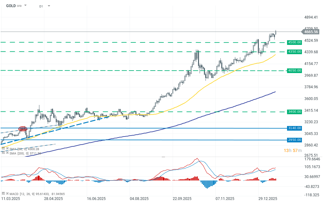 Złoto przebija kolejne poziomy i zbliża się do 4700 USD za uncję.