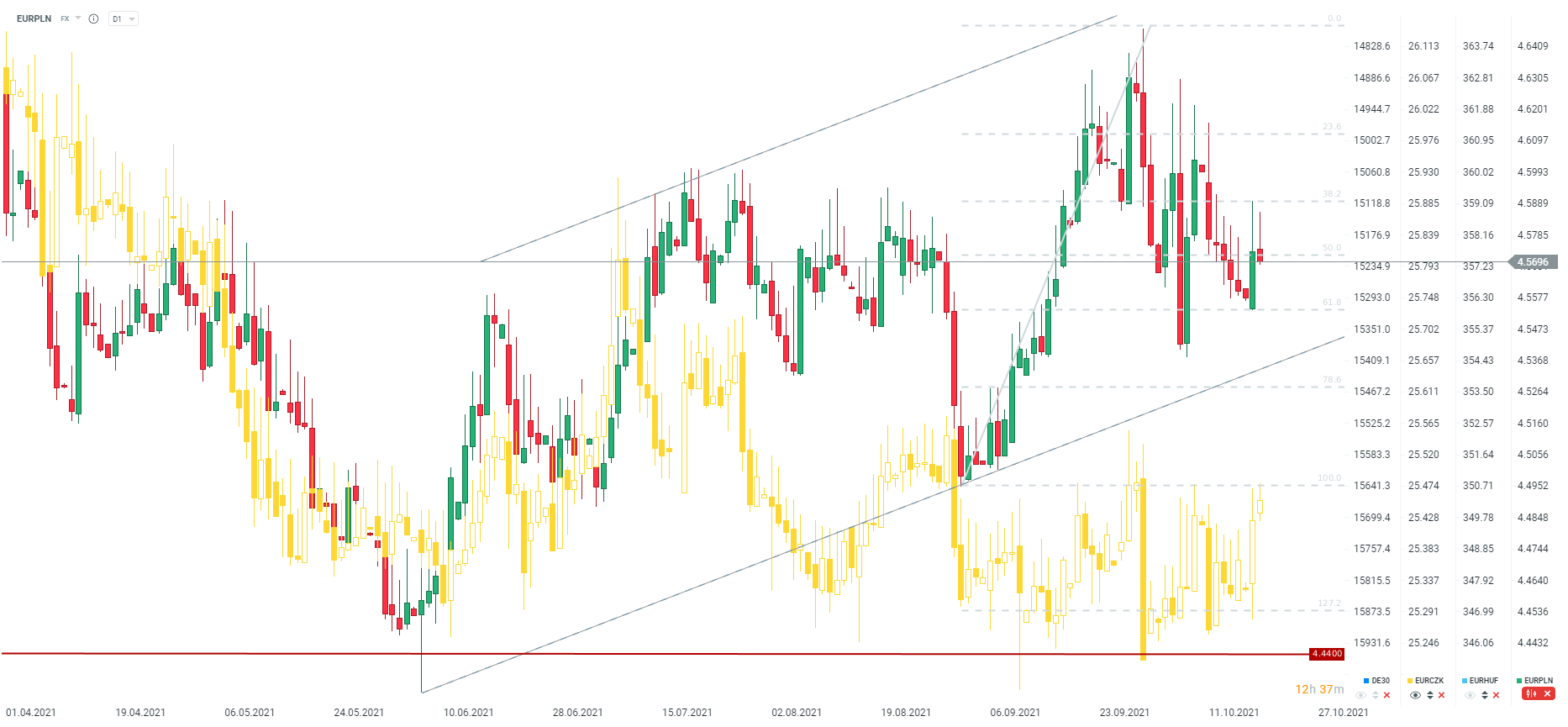 Wczoraj obserwowaliśmy wyraźne osłabienie polskiego złotego. Wciąż kluczowym czynnikiem dla PLNa są perspektywy związane z dalszymi podwyżkami stóp. Wobec tego dzisiaj inwestorzy będą przyglądać się dalszym ruchom ze strony Narodowego Banku Węgier. Kolejna podwyżka w banku centralnym z naszego regionu może zachęcić RPP do dalszego dostosowania stóp procentowych.