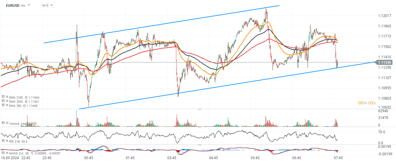 EURUSD dziś traci i testuje dolny przedział ostatniego kanału cenowego. Wybicie dołem może wskazywać test poziomów poniżej 1.11. Najważniejsze dla pary okażą się dziś dane PCE z USA (14:30).