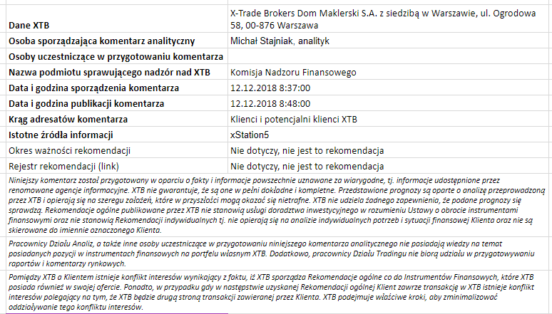 Ta publikacja handlowa jest informacyjna i edukacyjna. Nie jest rekomendacją inwestycyjną ani informacją rekomendującą lub sugerującą strategię inwestycyjną. W materiale nie sugerujemy żadnej strategii inwestycyjnej ani nie świadczymy usługi doradztwa inwestycyjnego. Materiał nie uwzględnia indywidualnej sytuacji finansowej, potrzeb i celów inwestycyjnych klienta. Nie jest też ofertą sprzedaży ani subskrypcji. Nie jest zaproszeniem do nabycia, reklamą ani promocją jakichkolwiek instrumentów finansowych. Publikację handlową przygotowaliśmy starannie i obiektywnie. Przedstawiamy stan faktyczny znany autorom w chwili tworzenia dokumentu. Nie umieszczamy w nim żadnych elementów oceniających. Informacje i badania oparte na historycznych danych lub wynikach oraz prognozy nie stanowią pewnego wskaźnika na przyszłość. Nie odpowiadamy za Twoje działania lub zaniechania, zwłaszcza za to, że zdecydujesz się nabyć lub zbyć instrumenty finansowe na podstawie informacji z tej publikacji handlowej. Nie odpowiadamy też za szkody, które mogą wynikać z bezpośredniego czy też pośredniego wykorzystania tych informacji. Inwestowanie jest ryzykowne. Inwestuj odpowiedzialnie.