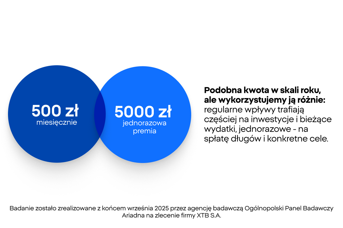 Takie podejście pozwoliło przeanalizować, jak zmienia się sposób myślenia o nadwyżkach finansowych w zależności od ich wysokości. Badanie zostało zrealizowane z końcem września 2025 przez agencję badawczą Ogólnopolski Panel Badawczy Ariadna na zlecenie firmy XTB S.A.