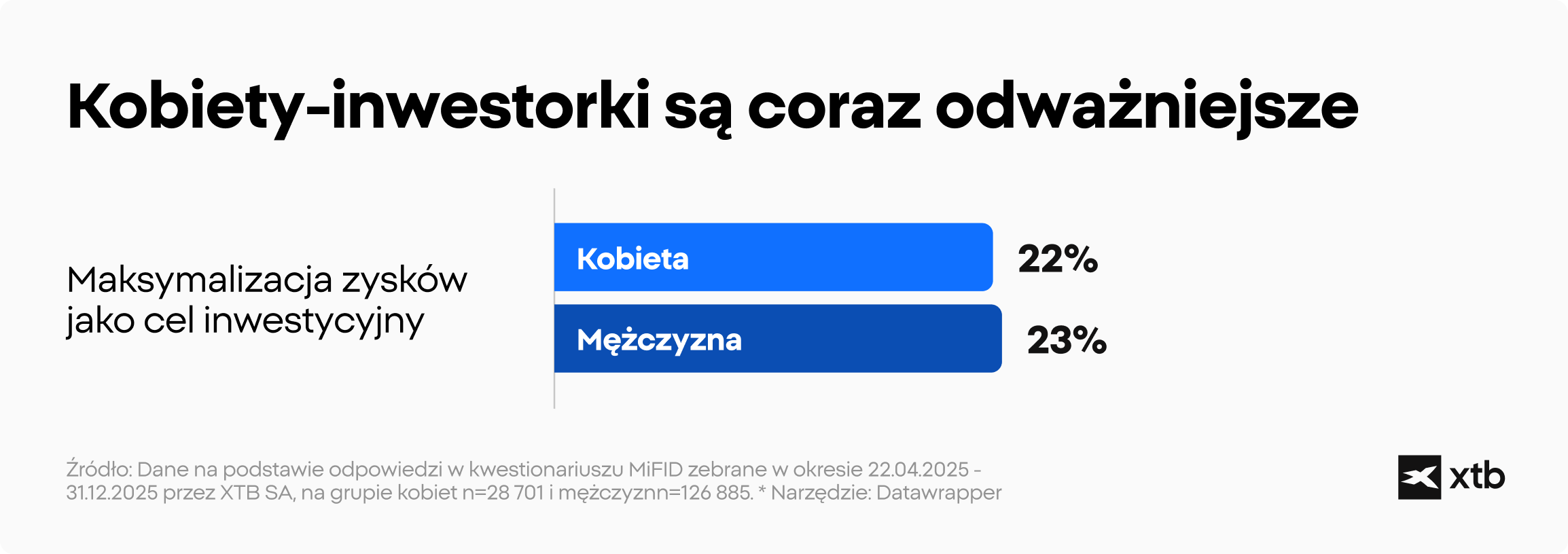 - Kobiety coraz częściej postrzegają inwestowanie jako sposób na zabezpieczenie swojej przyszłości i wzmocnienie finansowej niezależności. Myślą długoterminowo, ale nie rezygnują z ambicji osiągania atrakcyjnych stóp zwrotu - dodaje dr Monika Gorgoń, Dyrektor Działu Prawnego XTB.