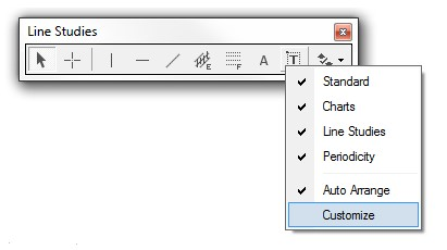 Wyświetli to listę wszystkich dostępnych narzędzi. Przenosząc pozycje z lewej strony na prawą sprawimy, że te pojawią się na głównym pasku.