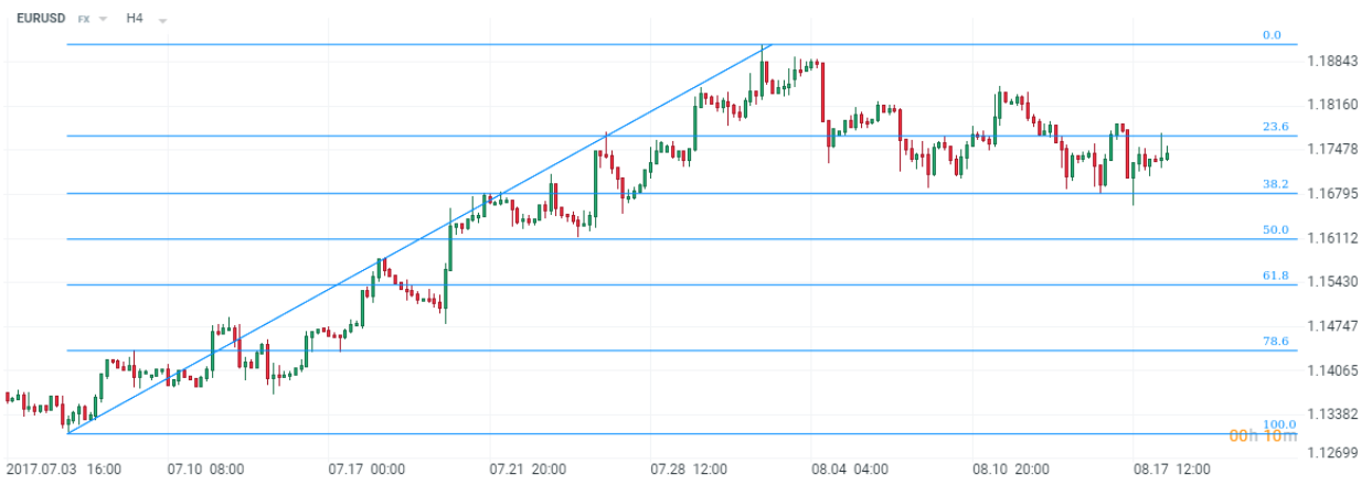 Narzędzia wykorzystujące zniesienia Fibonacciego mogą być niezwykle przydatnym elementem strategii, pozwalającym określić odpowiedni moment wejścia w pozycję oraz kierunek trendu. Traderzy obserwują kilka potencjalnie istotnych poziomów technicznych w zakresie danego trendu. Oznacza to, że dokonują kupna w momencie wzrostu danego rynku, a sprzedają gdy rynek się osuwa, stosując metodę podążania za trendem (co ogranicza ryzyko). Stosując narzędzia Fibonacciego zakłada się, że notowania mają większą szansę na odbicie od wyznaczonych poziomów w kierunku zgodnym z trendem. W naszym przykładzie cena spadła do zniesienia 50% początkowej fali wzrostowej zanim doszło do odbicia. Gdy poziomy Fibonacciego potwierdzają się z istotnymi historycznie wsparciami i oporami, wtedy ich znaczenie dodatkowo wzrasta.