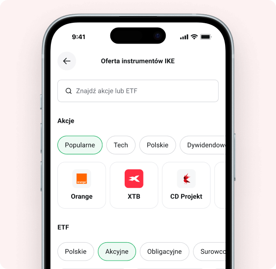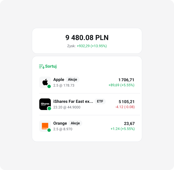 Wybieraj z ponad 7100 akcji z USA i Europy, w tym z Polski, a także spośród ponad tysiąca ETF, także tych notowanych w PLN.