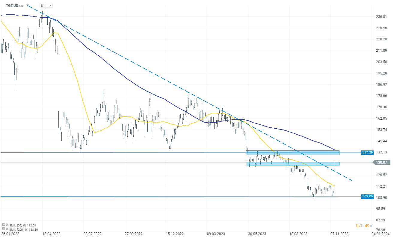 As ações da Target Corporation (TGT.US) estão a valorizar mais de 17% na abertura do mercado, depois de a empresa ter apresentado resultados do terceiro trimestre que ultrapassaram as expectativas de Wall Street. O lucro ajustado por ação (EPS) para o terceiro trimestre foi de 2,10 dólares, em comparação com 1,54 dólares em relação ao ano anterior (y/y), excedendo a estimativa média dos analistas de 1,47 dólares. Para o quarto trimestre, a Target prevê um EPS ajustado de $1,90 a $2,60, com o ponto médio ligeiramente acima da estimativa de $2,23. A empresa prevê um declínio de um dígito médio nas vendas comparáveis para o trimestre.