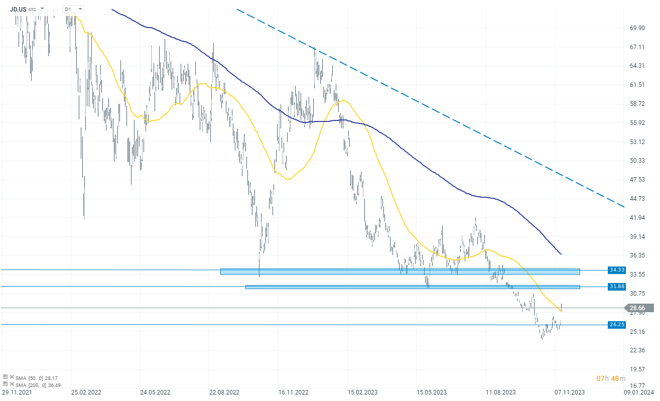 As ações da JD.com (JD.US) estão a valorizar mais de 6% depois da empresa ter apresentado os seus resultados trimestrais. As vendas da empresa excederam as expectativas recentemente reduzidas. Para o terceiro trimestre, a JD.com apresentou uma receita líquida de 247,70 mil milhões de yuans, um aumento de 1,7% em relação ao ano anterior, ligeiramente acima da estimativa de 246,59 mil milhões de yuans. O lucro ajustado por recibo de depósito americano foi de 6,70 yuan, em comparação com 6,27 yuan por ano, superando a estimativa de 5,87 yuan. De um modo geral, os resultados da JD.com indicam resiliência num mercado desafiante, com mudanças estratégicas e um enfoque na rentabilidade no meio de pressões competitivas.