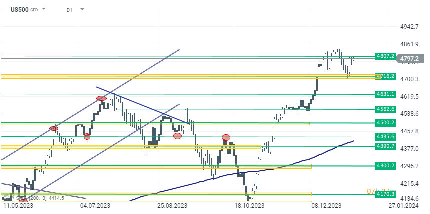 O US500 está a valorizar 0,15% hoje e voltou a testar a zona dos 4800 pontos.
