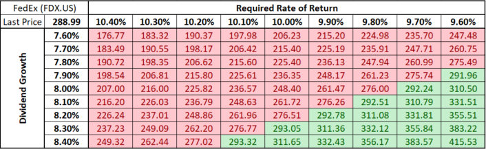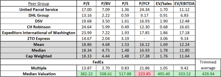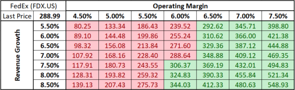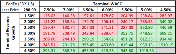 Vamos dar uma olhadela rápida à avaliação da FedEx com 3 métodos de avaliação frequentemente utilizados - DCF, múltiplos e Modelo de Crescimento de Gordon. Gostaríamos de salientar que estas avaliações são apenas para efeitos de apresentação e não devem ser consideradas como recomendações ou preços-alvo.