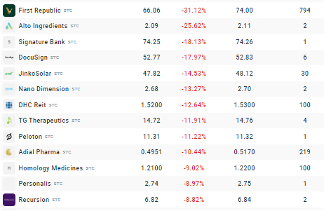 As ações que mais caem em Wall Street - Signature Bank and First Republic. Fonte: xStation5