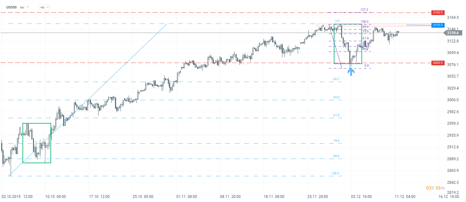 O US500 está a ser negociado perto dos máximos de todos os tempos. A decisão do FOMC pode ser um gatilho para um movimento em alta. Caso o índice quebre acima dos 3155, a subida pode estender-se até à próxima resistência na retração dos 127,2% de Fibonnaci da última correção descendente. Caso o mercado caia ainda mais após a decisão, o suporte principal pode ser encontrado nos 3080 pts (limite inferior da estrutura do Overbalance).