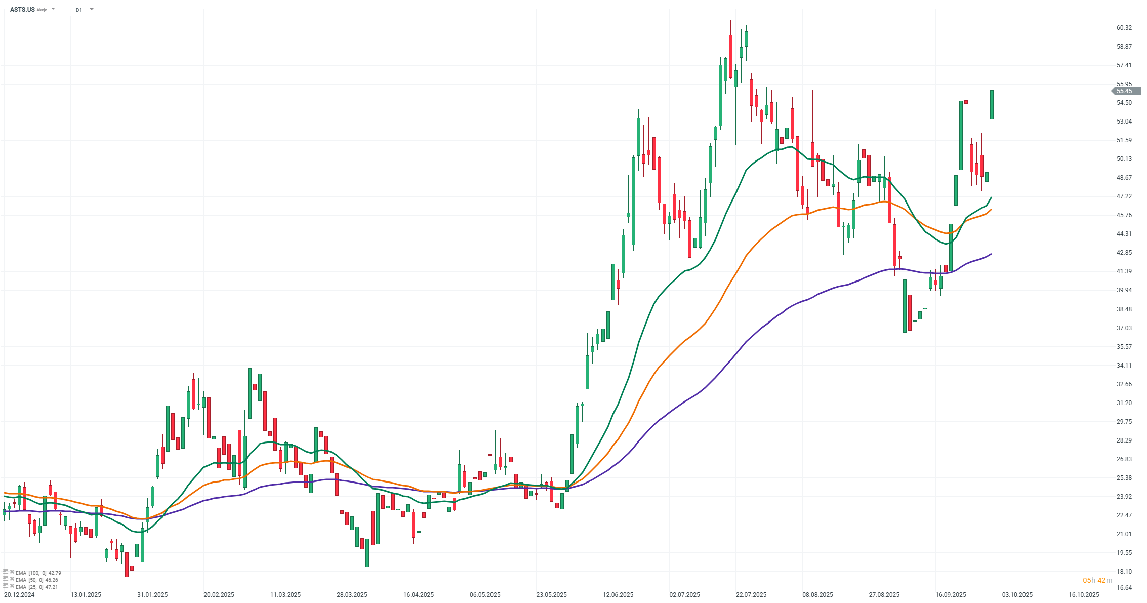 A AST SpaceMobile está a subir mais de 12% hoje, com os investidores a responderem entusiasticamente às últimas atualizações sobre o progresso da constelação de satélites BlueBird. O principal impulsionador do aumento de preço é o anúncio da conclusão da montagem final e do teste bem-sucedido do satélite BlueBird 6, que está programado para ser enviado para a Índia em 12 de outubro — um marco importante no cronograma do projeto. Além disso, o BlueBird 7 está na fase final de preparação e deve ser transportado para o local de lançamento no Cabo Canaveral no final deste mês, destacando o ritmo e a eficácia da empresa.