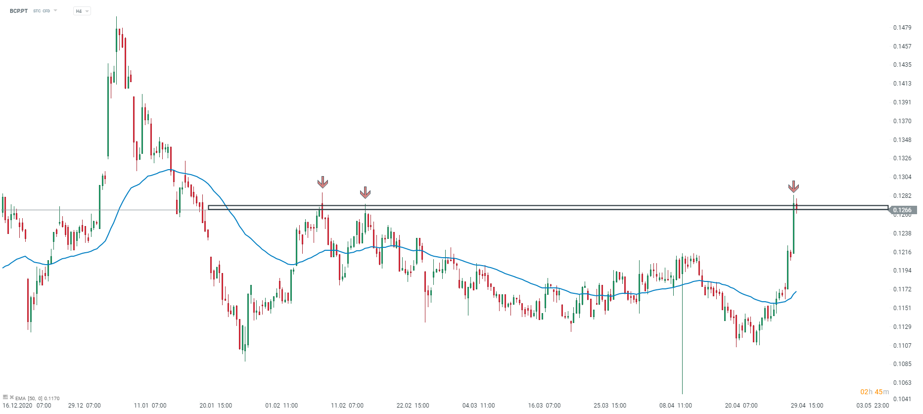 Ações do BCP.PT, gráfico 4 horas. Fonte: xStation 5