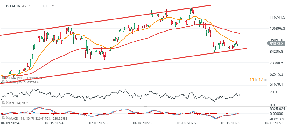 Ontem, a Strategy (MSTR.US) decidiu adquirir 13,6 mil BTC, elevando as suas participações em bitcoin para quase 687 mil BTC; as ações subiram mais de 3% durante a sessão de ontem nos EUA e estão em alta de mais de 1% hoje, antes da abertura do mercado. Foi a maior aquisição da empresa desde o verão de 2025. As ações da Strategy estão atualmente a ser negociadas em linha com o valor do bitcoin que detém, sugerindo uma estabilização gradual em comparação com as semanas anteriores, quando as ações foram negociadas ligeiramente abaixo do valor das suas reservas de BTC.