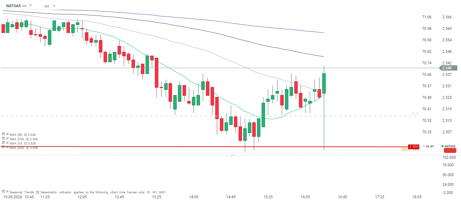 Os preços do gás inicialmente caíram em resposta, mas se recuperaram do nível de suporte chave de $2,5/MMBTU. É importante notar que estamos um dia após o rollover do contrato, com o preço abrindo em torno de US $ 2,6, depois de ter sido negociado anteriormente a US $ 2,3 no contrato de outubro. Fonte: xStation5